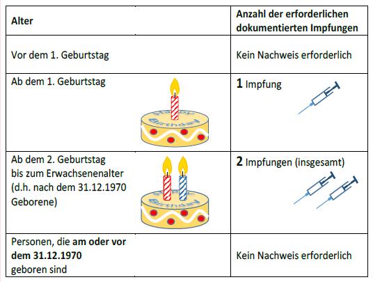 · Ja. Alle Kinder, die eine Kindertagespflegestelle, eine Kita oder Schule ab dem ersten Geburtstag besuchen, müssen geimpft sein.